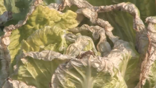 ◦ 토양 중 칼리 함량이 적은 사질 토양에서 자주 발생하며, 생육이 왕성해서 결구가 현저하게 이루어질 때 공급량이 흡수량을 따라가지 못할 경우 발생함
