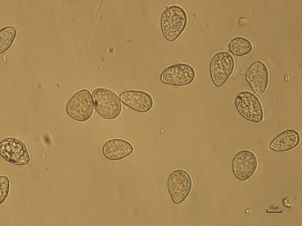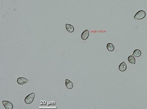 ◦ B. cinerea의 분생포자는 무색, 타원형 혹은 계란모양, 약간 돌출한 배꼽(hilum)을 가지고 있으며, 크기 6~18×4~11㎛, 균핵은 흑색, 부정형, 길이 3~6mm, B. squamosa의 분생포자는 무색, 단세포, 난형, 크기 15~21×13 ~16㎛임