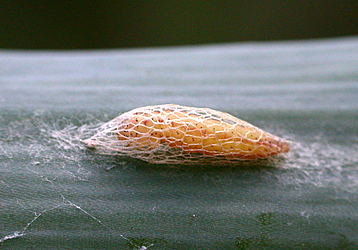 ◦ 성충은 잎에 점점이 알을 낳고 부화된 유충은 표피 속으로 들어가 엽육을 가해하며 다 자란 유충은 구멍을 뚫고 표면에 나와 실을 토해 엉성한 고치를 짓고 번데기가 되며, 알기간 3.9일, 유충 10.3일, 번데기 5.9일임
