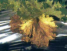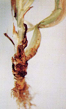 ◦ 생육 초기부터 중기까지 발생하며, 감염된 그루의 잎 밑둥이 암갈색으로 변해 썩고 진전되면 그루 전체가 말라 죽음
