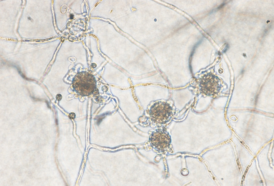 ◦ 병원균은 균사 혹은 난포자 형태로 토양입자에 흡착되거나 병든 식물체 잔재물에서 월동하여 1차 전염원이 되고 병환부에 형성된 유주자낭에서 분출한 유주자가 토양 수분을 따라 주위로 확산되며, 병원균은 표토로부터 10cm 이내에 주로 분포함