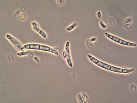 ◦ 불완전균에 속하며, 소형분생포자(단세포, 계란형 또는 콩팥모양, 크기 2.5~ 4×6~15㎛)와 대형분생포자(초승달모양, 3~5세포, 크기 3.5~5.5×21~35㎛) 형성, 후막포자는 구형, 오래된 균사에서 형성, 직경 7~11㎛임