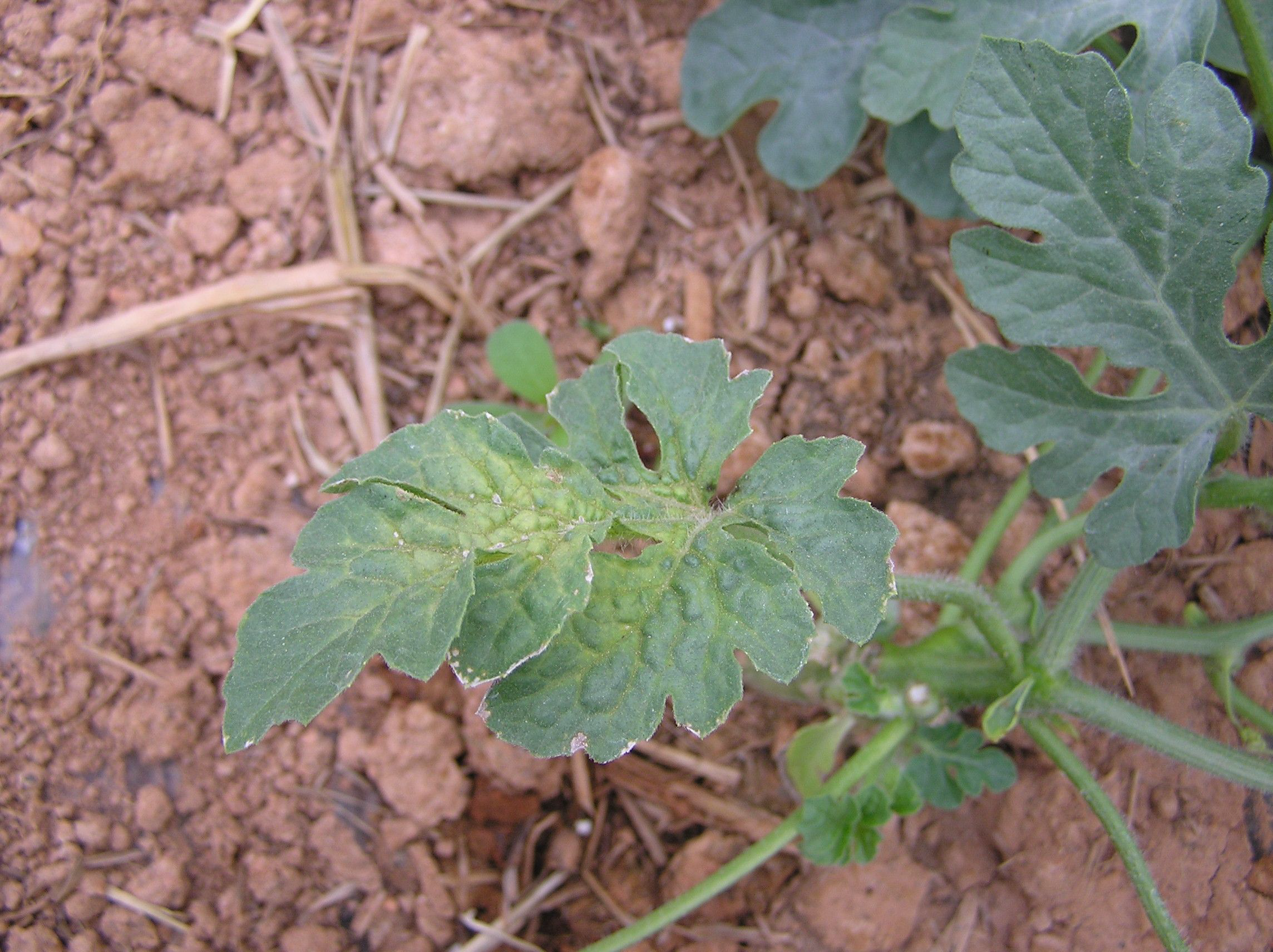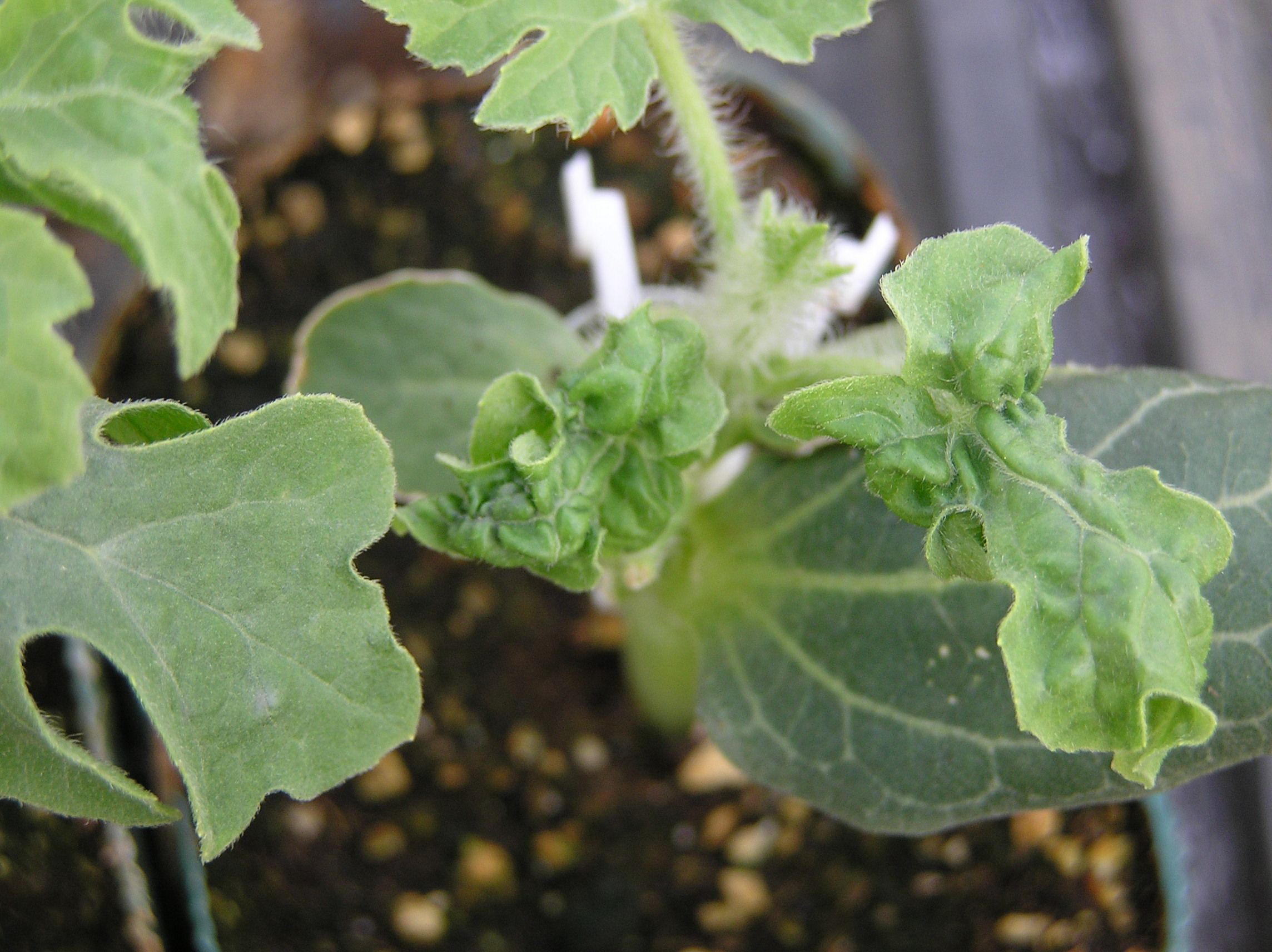◦ 성충과 약충이 잎 뒷면, 새순 등에서 집단으로 가해를 하여 초세를 약화시키고 잎이 오그라지거나 말리는 등 변형이 될 뿐만 아니라 오이모자이크바이러스, 수박모자이크바이러스 등 각종 바이러스병을 전염시킴