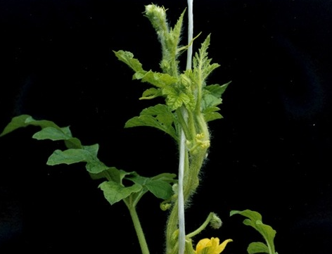 ◦ 체내의 이동이 늦기 때문에 새로 나오는 생장점 부근의 잎에서부터 증상이 나타나기 시작하는데, 생육이 정지되고 위축현상이 나타나며, 잎은 약간 농녹색을 띠게 됨