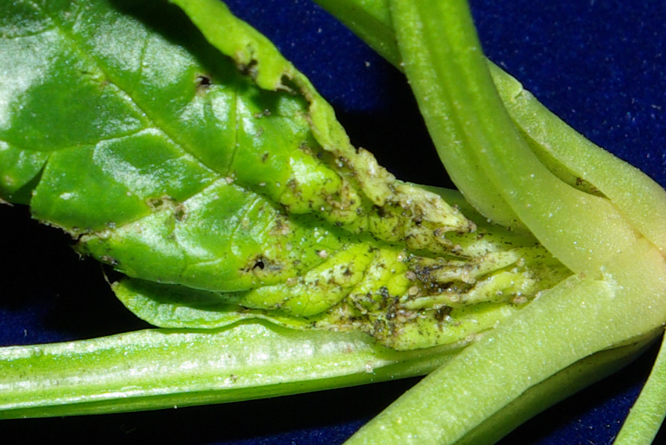 ◦ 봄, 가을 재배기에 주로 발생하고 생육 초기에 피해를 받으면 50~100%의 피해를 주므로 시금치 파종 후 어린묘 시기에 철저한 예찰 및 방제가 필요함