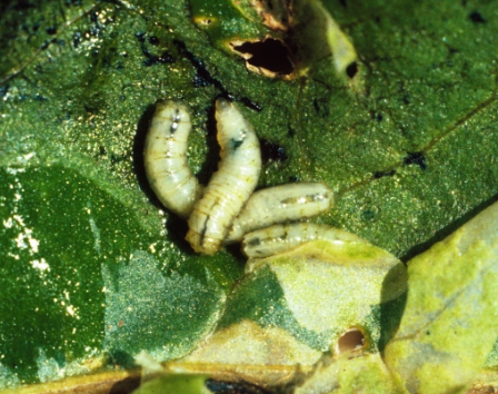 ◦ 3~5일이 지나면 유충이 부화하여 잎 속으로 들어가 가해하며, 때로는 다른 잎으로 이동하여 가해하고 유충기간은 10일 내외임