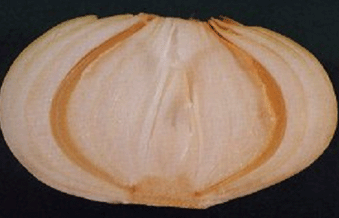 ◦ P. cepacia에 의한 Sour skin병은 구의 내부 인편이 황색 내지 담갈색으로 변하여 물러 썩고 구를 잘라 종단면을 보면 갈변된 병반 주위로 끈적끈적한 세균이 분출되는 것을 볼 수 있음