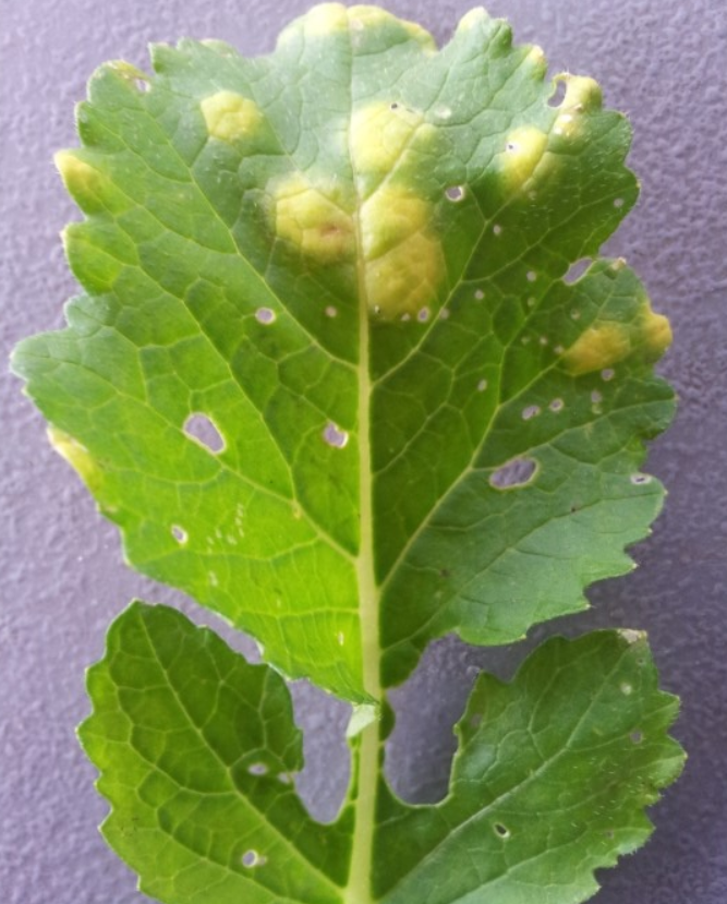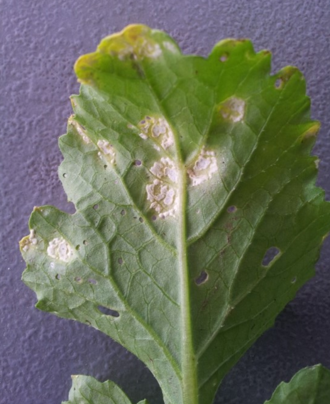 ◦ 처음에는 잎의 뒷면에 흰색의 작은 병반이 나타나고 점차 진전되면 표피가 갈라지면서 하얀 포자덩어리가 형성됨