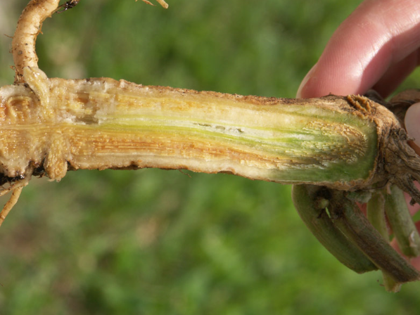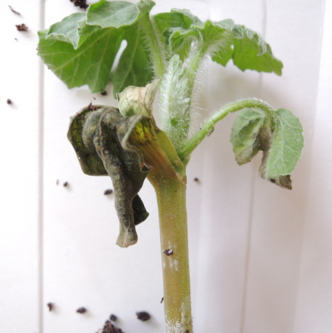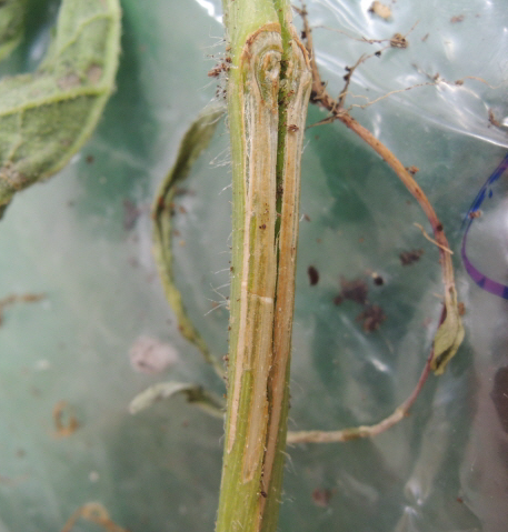 ◦ 기온이 상승하고 건조한 낮 동안에 심하게 시들고 아침에는 다소 회복되기도 하는데, 역병과는 달리 지상부위는 침해를 받지 않지만 과실이 작고 불량해짐