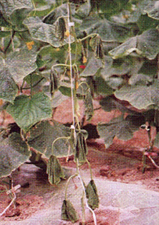 ◦ 처음에는 줄기에 붙은 잎들이 약간씩 아래로 늘어져 시들고 진전되면 전체 잎이 푸른 상태로 급격히 시듦