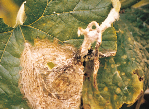 ◦ 줄기, 잎, 잎자루, 과실에 발생함