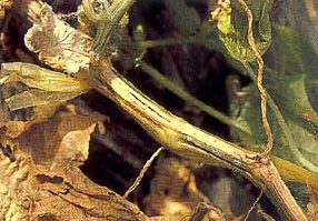 ◦ 간혹 끈적끈적한 수액이 병든 조직으로부터 유출되기도 하고 줄기가 갈라지기도 하며, 기온이 상승한 건조한 낮 동안에는 심하게 시들고 아침에는 다소 회복되기도 하는데, 과실이 착과된 이후에 갑자기 시드는 경우가 많음
