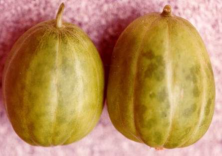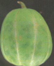 ◦ 과피의 표면에는 짙은 녹색으로 약간 둥근 괴저 반점이 생기는 것이 많고 과육 내에 담황색 수침 상태 및 황색 섬유의 줄기가 나타남