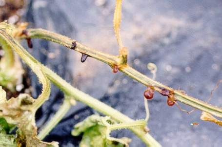 ◦ 간혹 끈적끈적한 수액이 병든 조직으로부터 유출되기도 하며, 기온이 상승하고 건조한 낮 동안에는 심하게 시들고 아침에는 다소 회복되기기도 하는데, 과실이 착과된 이후에 갑자기 시드는 경우가 많음