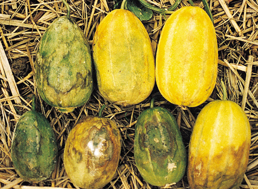 ◦ 병든 포기의 땅가줄기와 굵은 뿌리는 수침상으로 썩으며, 쉽게 뽑히고 과실에는 부정형의 큰 수침상 병반이 나타남