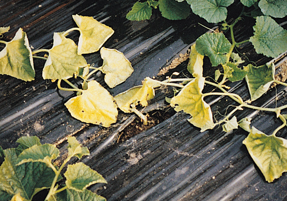 ◦ 생육기에는 뿌리와 줄기썩음으로 나타나며, 땅가부위의 줄기나 뿌리는 수침상으로 썩고 연한 갈색으로 변하며, 병든 그루의 잎은 누렇게 변해 시듦
