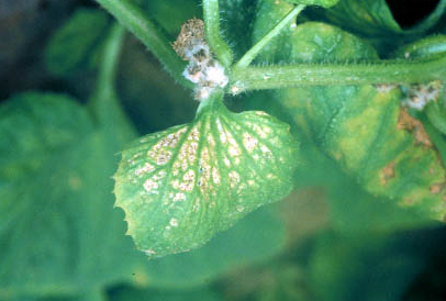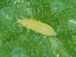 ◦ 밀도가 높으면 잎 전체에 작은 백색 반점이 생기고 어린 잎은 자람이 정지되고 점차 엽록소가 파괴되어 갈색으로 변하면서 말라 죽음
