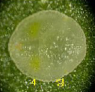 ◦ 알은 긴 타원형으로 산란 직후 연한 황녹색이지만 점찬 연한 갈색으로 변해 진한 갈색을 띠는 온실가루이와 구별됨