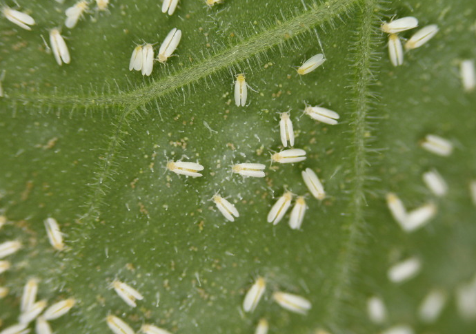 ◦ 잎의 뒷면에 기생하며 식물체를 흡즙하고 생육억제, 배설에 의한 그을음병을 유발하고 심하면 식물체가 고사됨