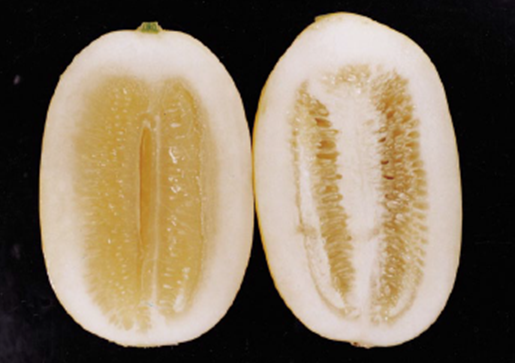 ◦ 외관상으로는 특별한 증상이 없으나 과실을 절단해 보면 태좌부와 그 인접된 과육이 수침상으로 갈변된 것이 있으며, 피해가 심해지면 과육부까지 변색하고 심하게 발효된 것은 냄새가 나고 단맛도 떨어짐