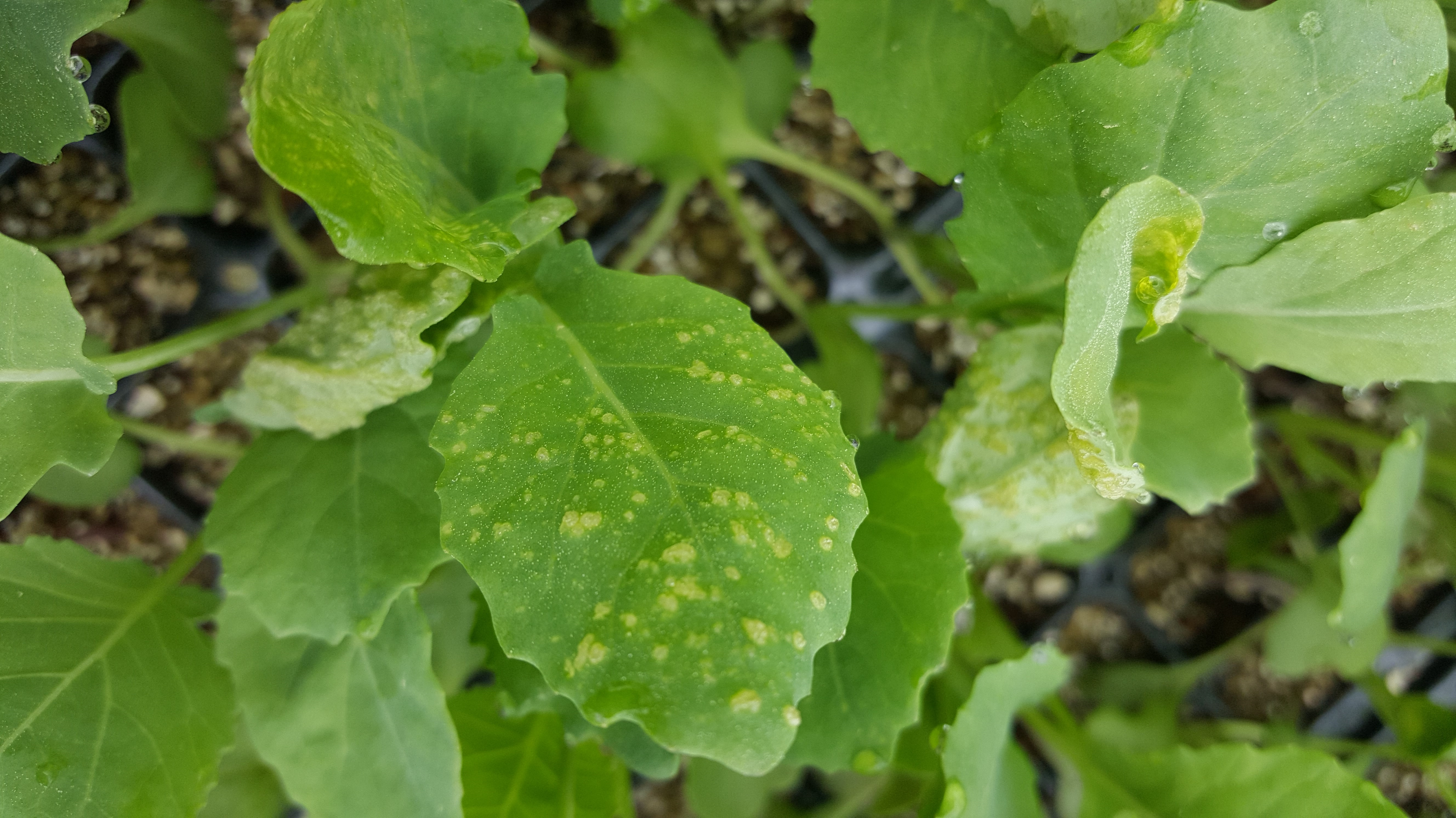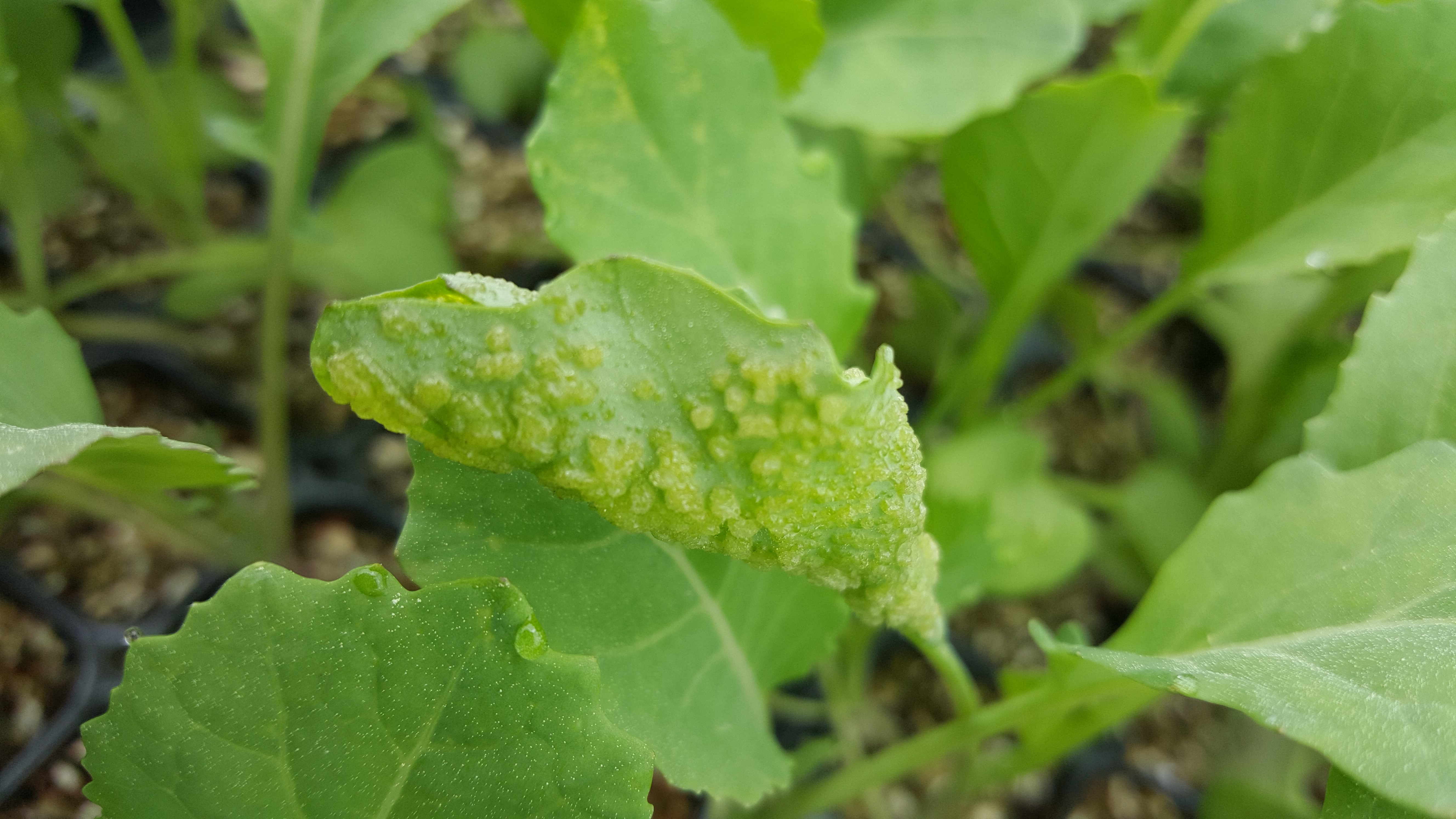 ◦ 처음에 잎 뒷면에 좁쌀알 크기의 작은 수포 또는 물사마귀를 형성하고 엽조직 전면에 걸쳐 발생함