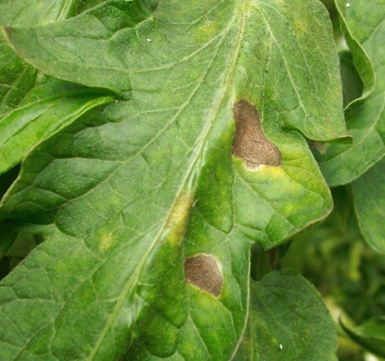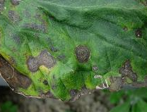 ◦ 감염부위에는 처음에 타원형의 갈색 반점으로 나타나고 진전되면 암갈색의 겹무늬 반점으로 확대됨