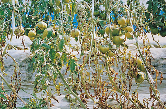 ◦ 유묘기에 감염되면 그루 전체가 심하게 시들고 곧 죽으며, 생육 중기나 후기에 감염되면 초기에는 아랫잎부터 약간 황화되어 시들고 말라 죽음