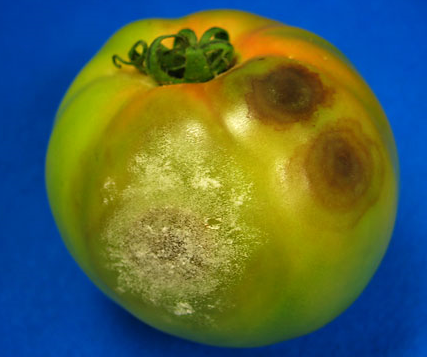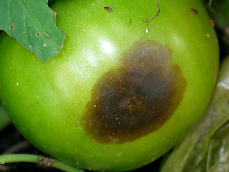 ◦ 간혹 지표면 가까이에 매달린 과실에도 수침상의 병반이 나타나 회갈색의 큰 원형병반으로 썩으며, 다습한 환경에서 흰 곰팡이 균사체와 포자가 많이 형성됨