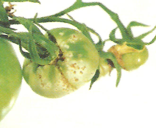 ◦ 과실에는 백화현상과 함께 수침상의 점무늬가 형성되어 약간 돌출한 갈색의 궤양증상으로 나타남