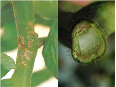 ◦ 발병은 25~27℃에서 잘 되고 고온인 한여름에는 거의 진전되지 않으며, 최근 외국에서 수입한 품종을 재배하는 시설재배포장에서 병발생이 확인됨
