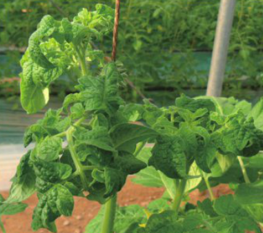◦ 잎의 굴곡이 심하면 심할수록 토마토 식물체 내의 질소 성분이 많이 축적되어 있으므로 질소 시비를 줄여줌