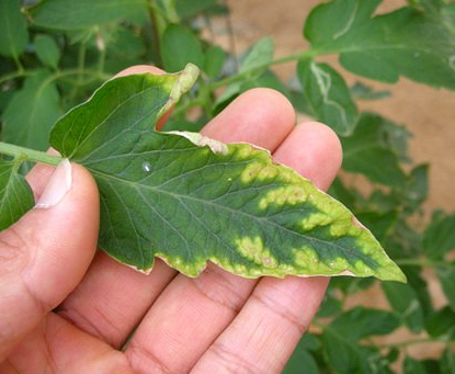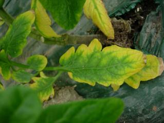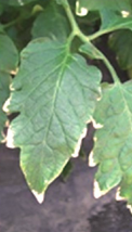 ◦ 잎에서는 늙은 잎에서 먼저 발생되며, 선단부가 먼저 황화되고 괴사까지 진행