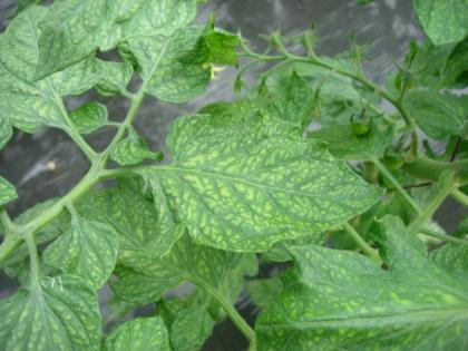 ◦ 난방기에 의한 일산화탄소 가스 피해의 급성해는 하루밤 사이에 발생하여 흰 반점이 생기나 저온에 의한 피해와 유사하며, 만성해는 잎에 생기가 없고 잎 뒤가 갈변하고 점차로 마그네슘 결핍에 가까운 증상이 되며, 농도가 연할 때는 잎 가장자리 일부가 변색되고 엽맥 사이에 작은 반점이 발생하는 등 증상이 다양함