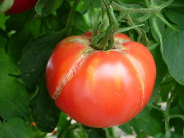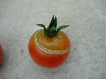 ◦ 꼭지 부분에서 발생하는 방사상 열과는 과일 표피가 약한 품종에 많이 발생하고 과피와 과육부 발육의 불균형으로 발생하며, 건조한 상태가 계속 되다가 갑자기 물을 많이 주거나 건조 후 비가 내릴 때 발생이 심함