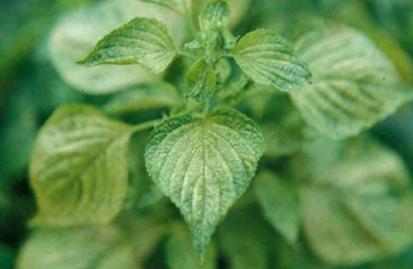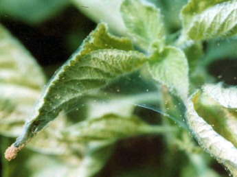 ◦ 잎 뒷면에서 세포 내용물을 빨아 먹어 잎 표면에 작은 흰 반점이 무더기로 나타나고 진전되면 잎이 갈색으로 변하면서 말라죽고 조기 낙엽됨