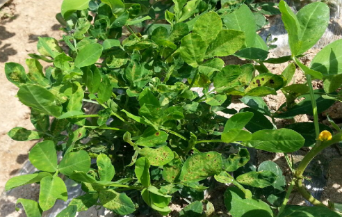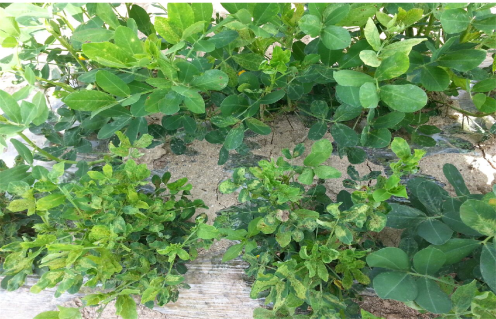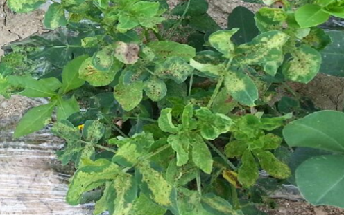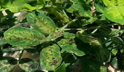 ◦ 잎에 황색~담갈색의 작은 반점이나 원형반점을 형성하며, 병반이 서로 융합되면 잎이 황화되어 마른 증상을 나타내며, 결국 시들어 고사함