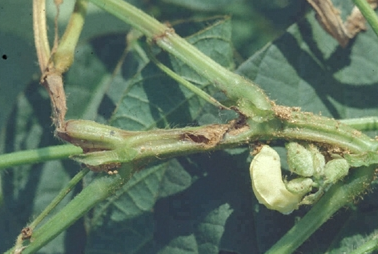 ◦ 자세한 생태는 아직 잘 알려지지 않았으나 연 2회, 5~6월, 7~8월에 성충이 출현하며, 다 자란 유충으로 피해를 받은 줄기나 꼬투리에서 월동