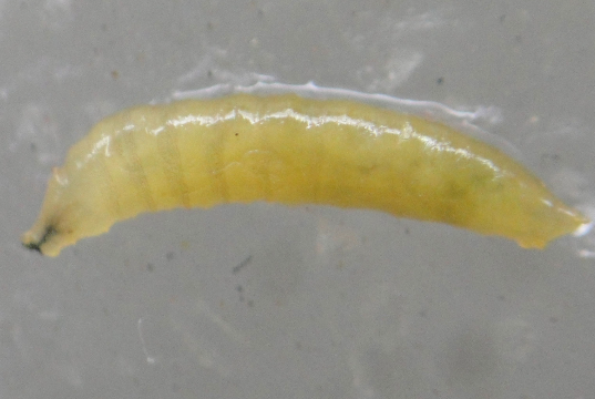 ◦ 다자란 유충의 길이는 5mm 정도로 유백색의 구더기 모양