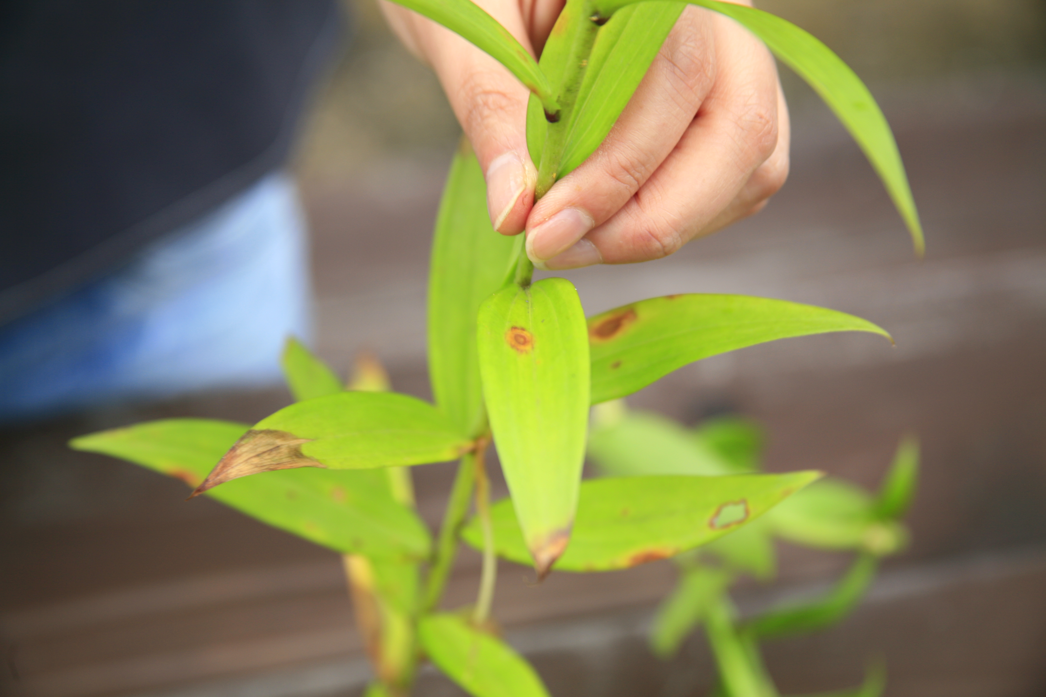 ◦ 꽃봉오리에도 작은 갈색 반점이 생겼다가 차츰 커지면서 부패함