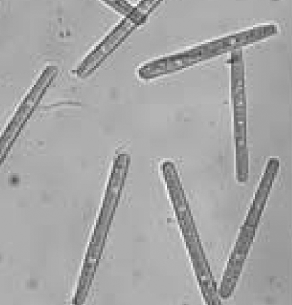 ◦ 분생포자는 긴 막대모양, 양끝이 둥글고 1~3개의 격막, 크기 67.5~95×4.8 ~6.5㎛임