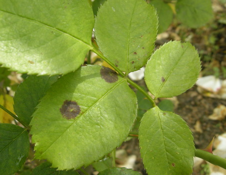 ◦ 주로 노지에서 재배하는 장미에서 장마철이 지나고 나서 덩굴자미와 정원용 장미의 잎에 심하게 발생하여 낙엽이 되며, 병반은 물방울이 고이기 쉬운 부분의 잎에 주로 발생함