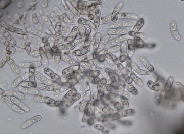 ◦ 분생포자는 무색, 1개 격막, 격막부위 오목, 크기 10~20×4~6㎛임