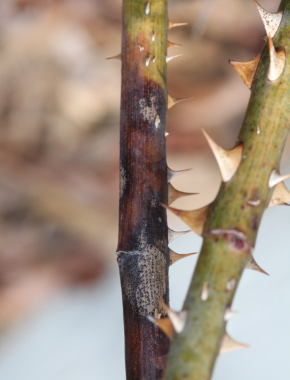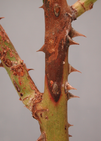 ◦ 주로 삽목 과정에서 전정가위에 의해 감염이 이루어지고 삽목상에서는 병든 줄기에 형성된 병원균이 물에 튀어 전염이 됨