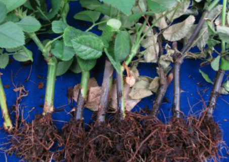 ◦ 처음에는 삽목묘의 뿌리 및 지제부의 줄기에 암녹색 수침상의 병반이 나타나고 병반은 검은색으로 급속하게 확대됨