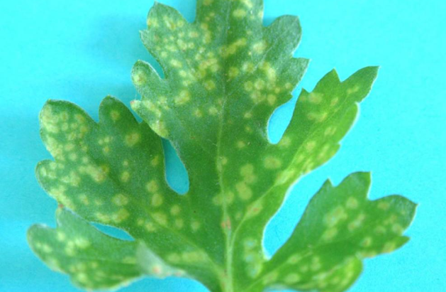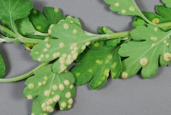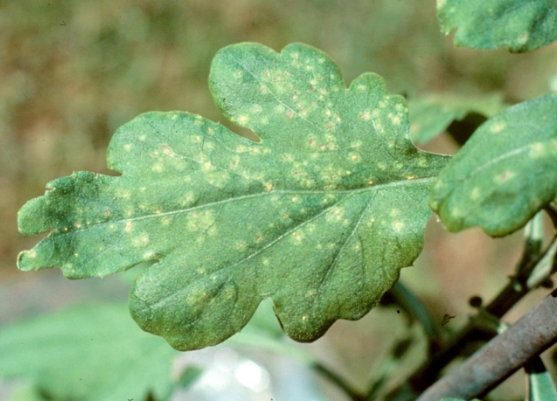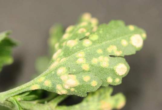 ◦ 잎 뒷면에 처음에 흰색으로 융기한 반점이 나타나고 돌기모양으로 변함